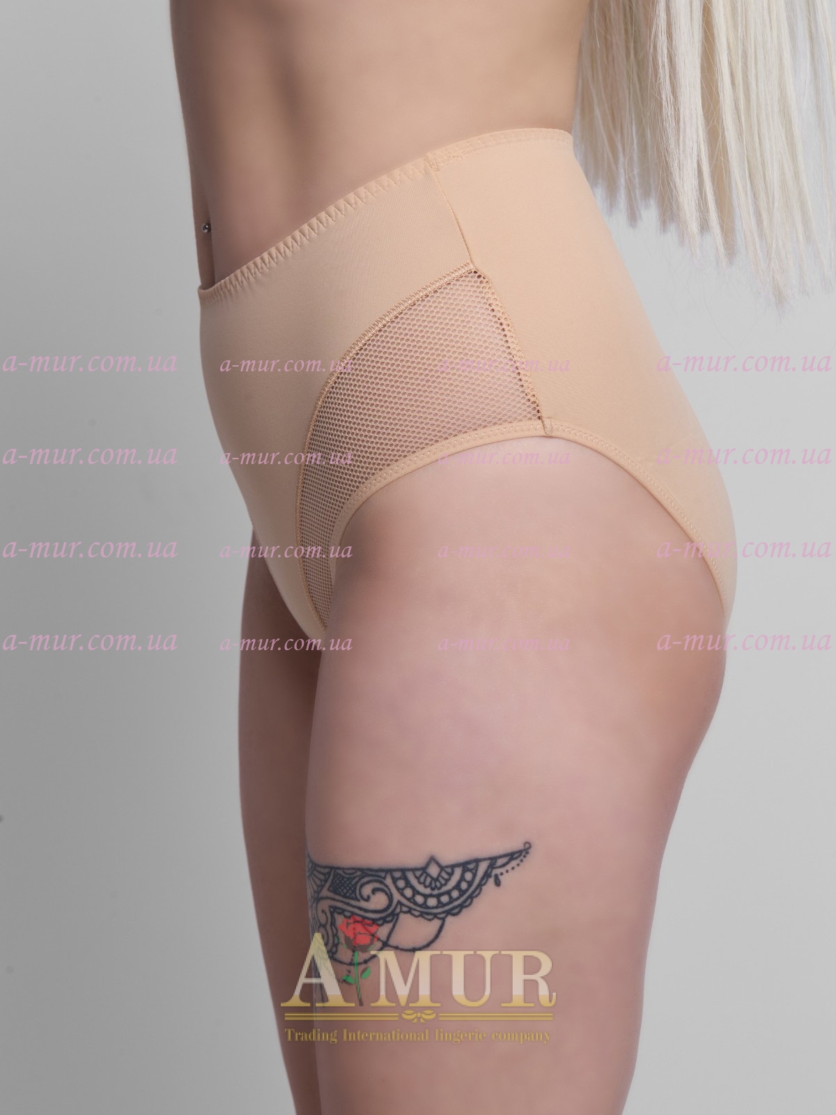 Трусы: закрытая гладкая утяжка с кружевными вставками.